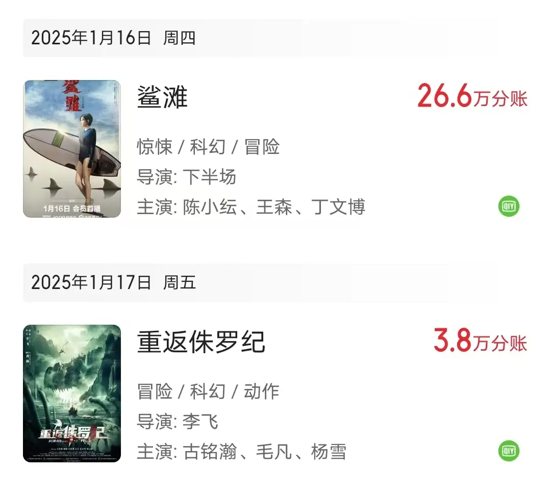 今年1月16日和17日这两天,国内线上视频平台先后播出了一部名为《鲨滩》和一部名为《重返侏罗纪》的国产网络电影。
